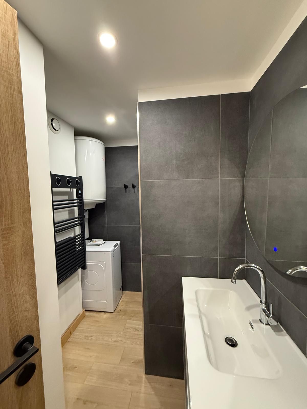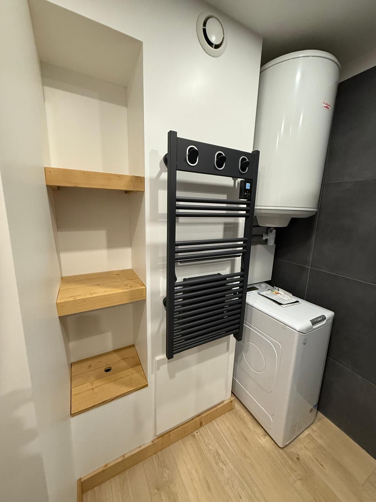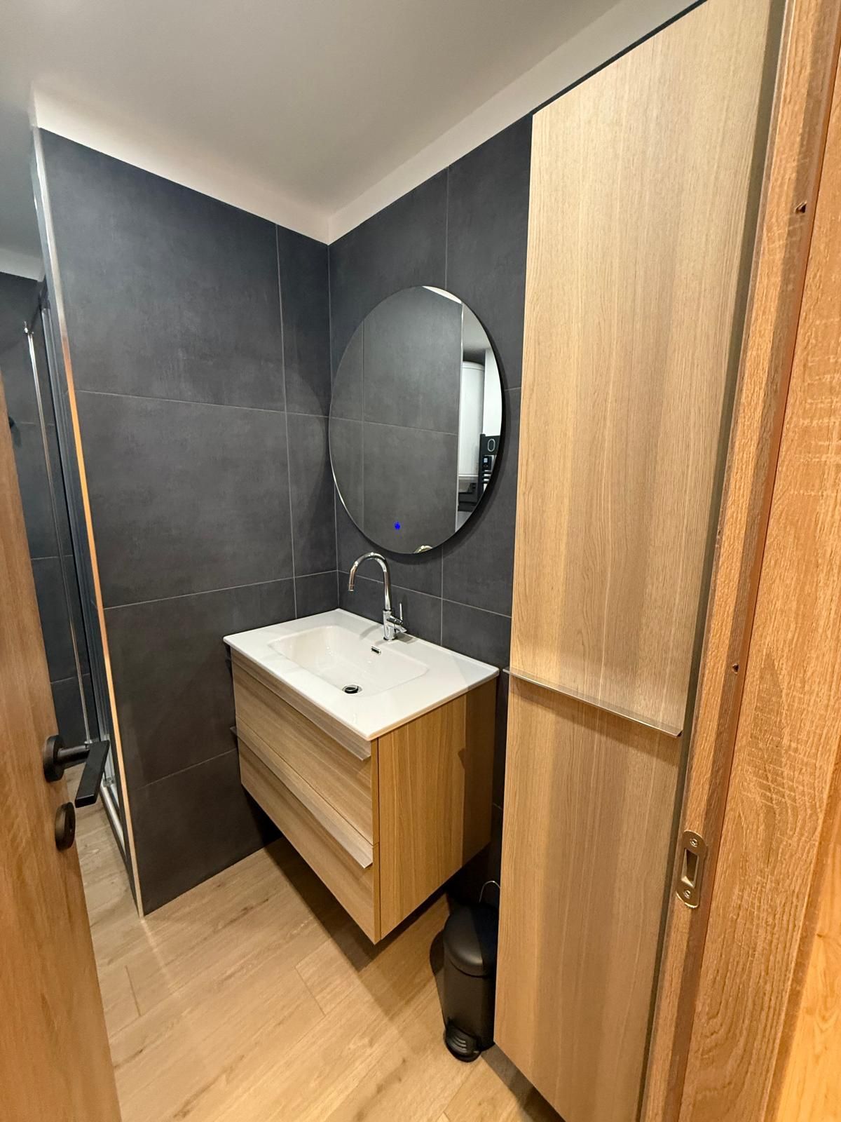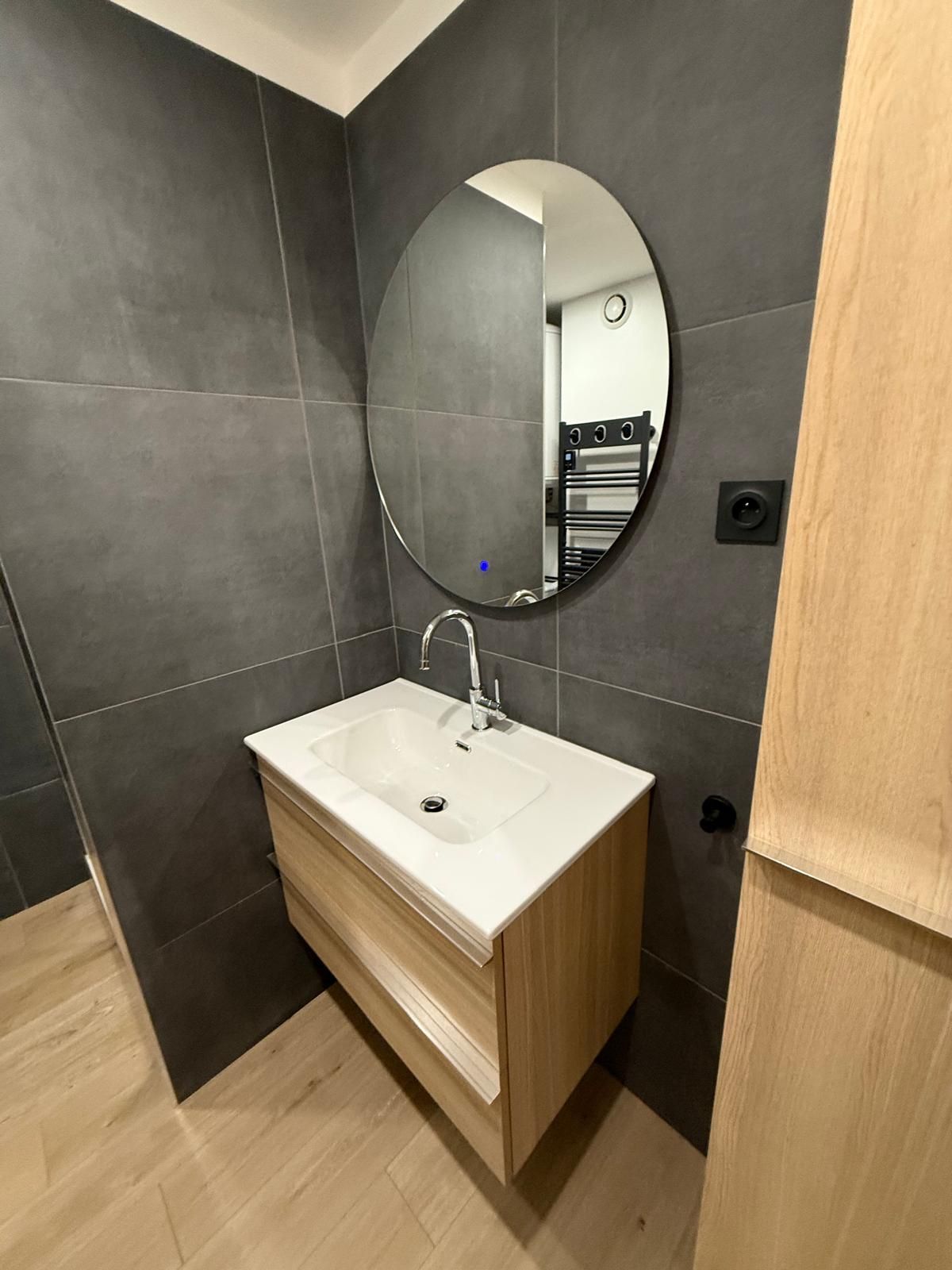 Nous aménageons votre salle d’eau selon vos envies, avec des rangements en bois astucieux et un design pensé pour votre confort au quotidien.